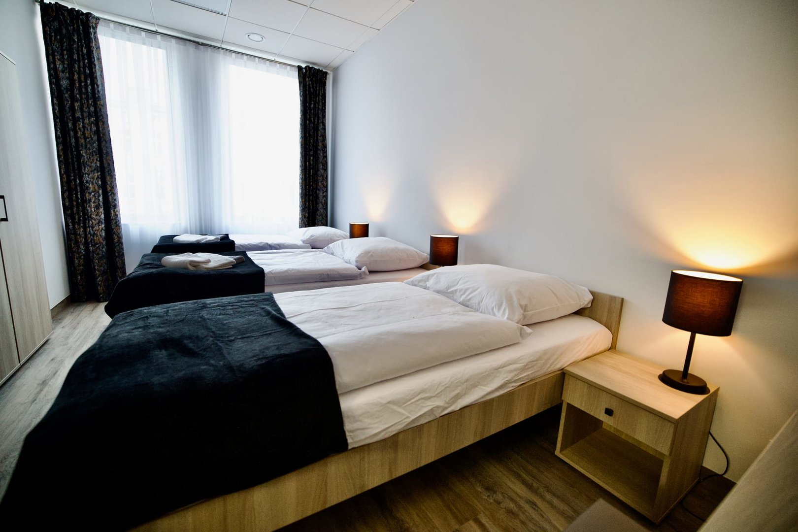 Funkcjonalny pokój CZTEROosobowy. Pokój znajduje się w studio D w sąsiedztwie z dwoma pokojami trzy trzyosobowymi oraz pokojem jednoosobowym. Idealny dla rodziny grupy przyjaciół czy zespołu sportowego.